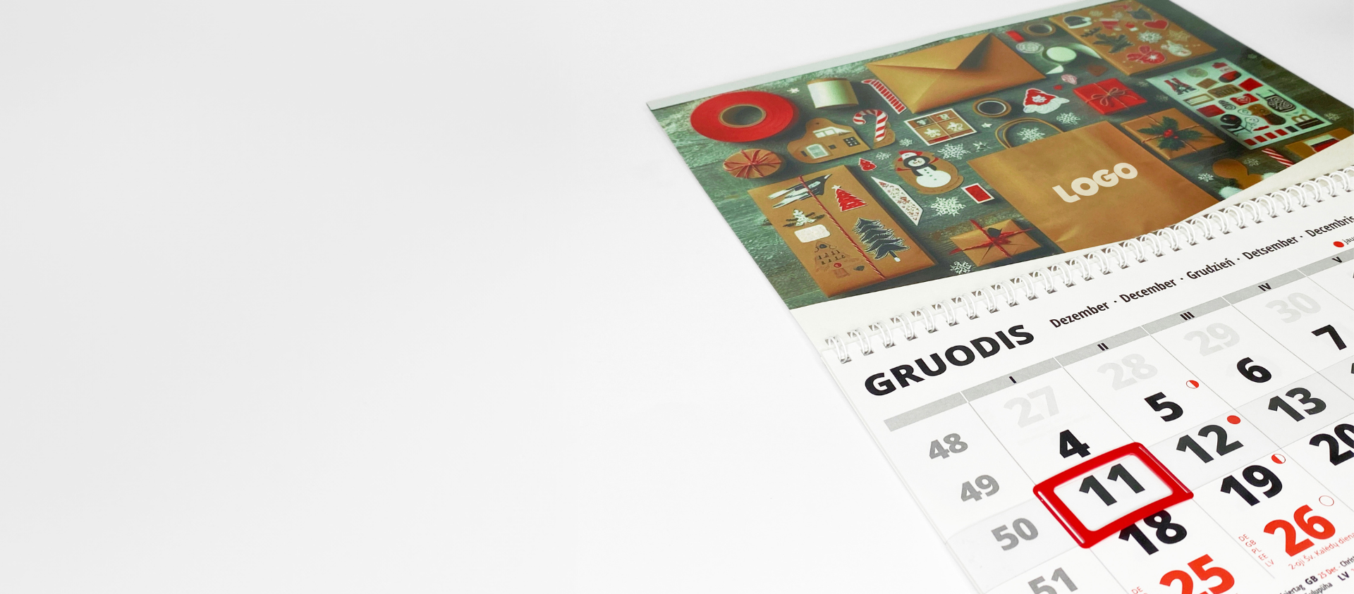 - Logotipai ir grafikos elementai. Verslo kalendoriai su logotipu ir profesionaliomis grafikos detalėmis padeda išlaikyti jūsų prekės ženklą matomą kiekvieną dieną. Jie tinka biurams ar dovanoms verslo partneriams.