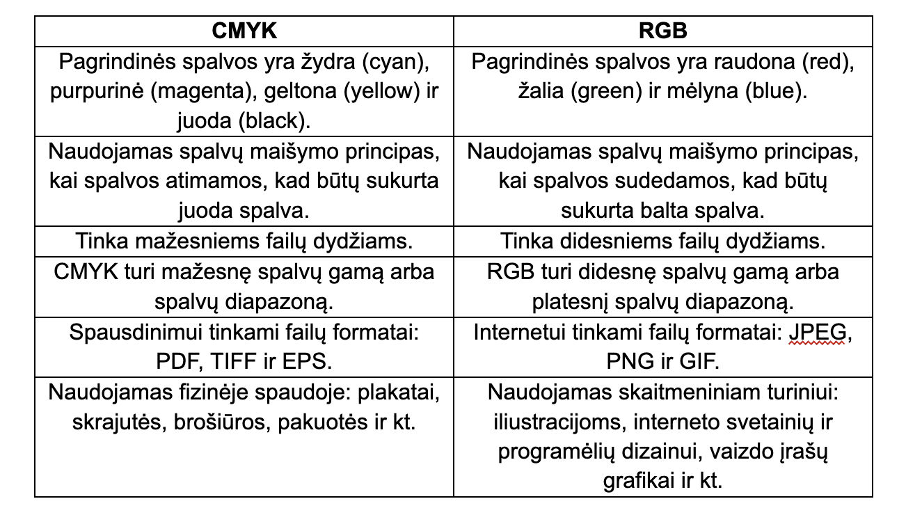 RGB ir CMYK spalvų modeliai: kuo jie skiriasi ir kodėl tai svarbu?
