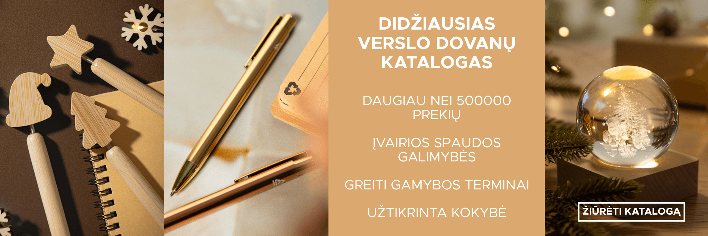 YES 2025 Katalogas Švenčių sezonas su daugiau nei 750 prekių, išskirtine kalėdinių gaminių kolekcija, kulinariniais rinkiniais ir žiemos aksesuarais. Pristatymas per 5-9 darbo dienas. | GO GREEN 2024 Tvarių, perdirbtų ir daugkartinio naudojimo dovanų katalogas. Pristatymas per 5-9 darbo dienas. | COOL 2025 Katalogas Ekologiški reklaminiai gaminiai ištisus metus. Pristatymas per 5-9 darbo dienas. |
